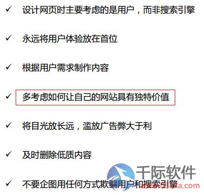 百度也提示了,要提供独特的价值,它的意思是让你Think different.世界上没有两片完全相同的树叶,也不应该有两个完全相同的网站。独有的,应该包括稀缺的内容、独有的语言风格、独有的内容形式、独有的网站形象等等,种种独有综合起来,不走寻常路,才能让别人记住你进而黏住你。