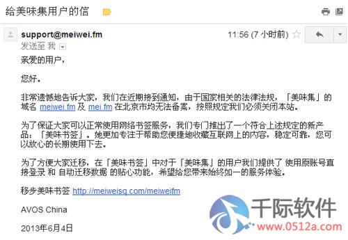 今天收到美味书签的一封邮件,说他们近期接到通知,由于国家相关的法律法规,他们的两个域名均无法备案,按照规定必须关闭本站,因此只得推出一个新的网络书签服务,原有用户可以迁移过去。
